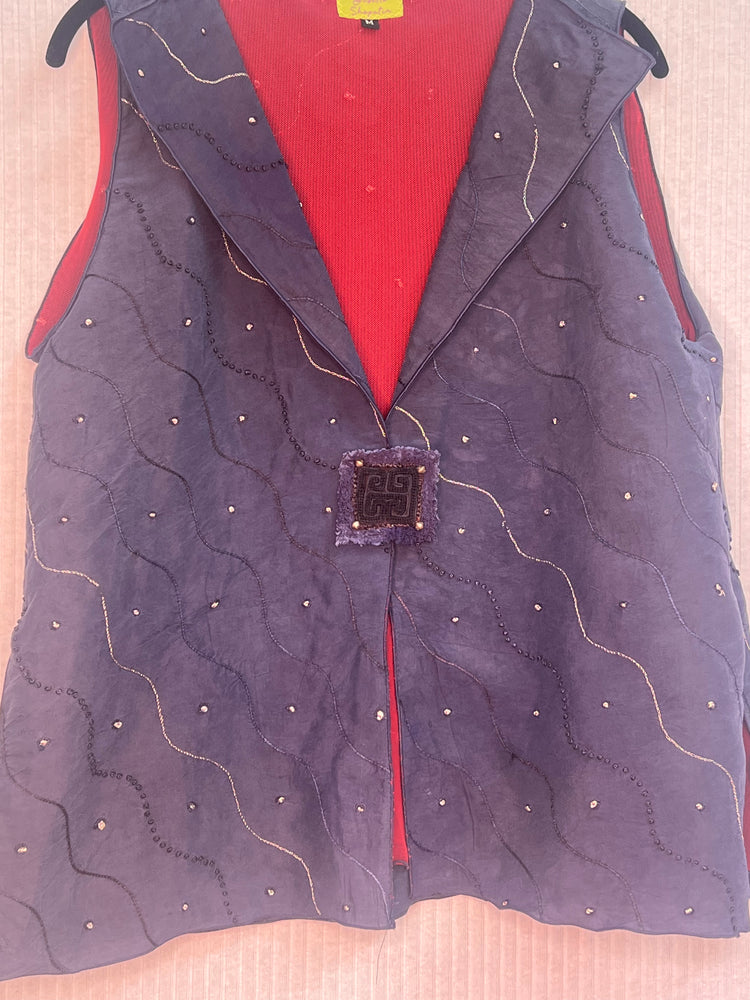 #1299 Ottoman Antique Metallic Embroidered Dancer’s Vest HandDyed Velvet, Silk Tassel