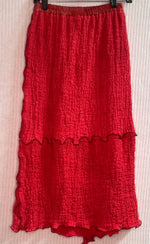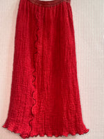 #1007 Breezy Hand Dyed Red Cotton Gauze and Velvet with Handmade Bobbin Lace