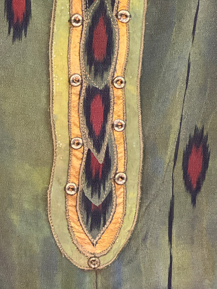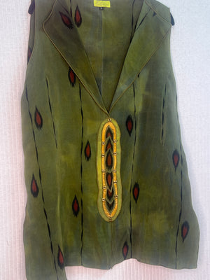 #1124 Peter Pan Overdyed Antique Silk Kimono with African Brass Beads