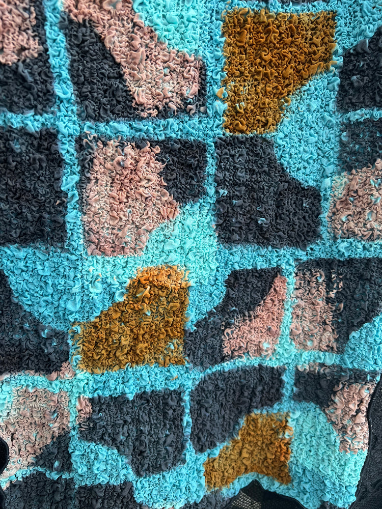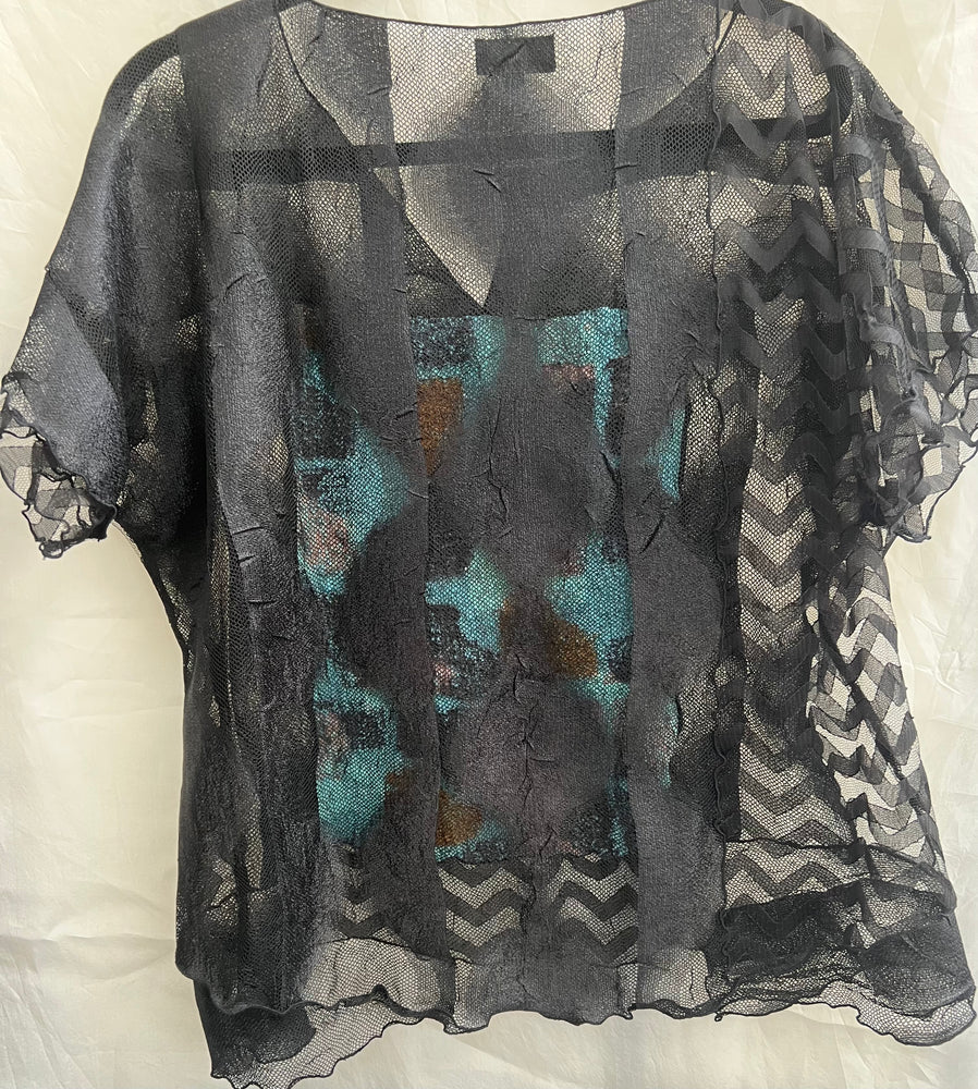 #250 QT Hand-Painted, Hand-Dyed Textured Geometrics with Tulle